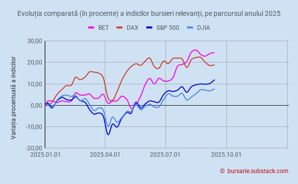 Graficul comparat ai principalilor indici bursieri urmăriți este prezentat mai jos: