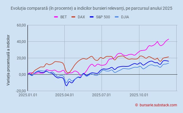 Graficul comparat ai principalilor indici bursieri urmăriți este prezentat mai jos: